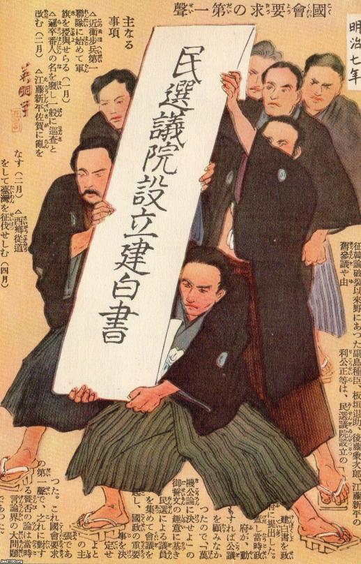 1874年 明治維新(明治7年)▷国会開設の要求(15年後の国会開設の第一歩)