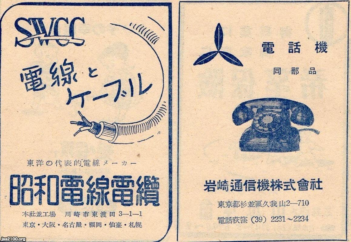 1951年 通信(昭和26年)▷電線とケーブル・固定電話機(昭和電信電纜、現・ 昭和電線ホールディングス)