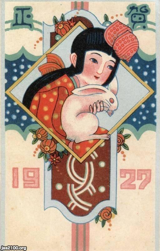 正月(昭和2年)▷羽子板・ウサギ年の年賀状