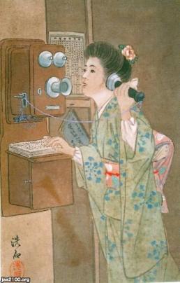 電話(明治44年)▷<女子電話使用ノ図>中村洗石・画