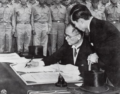 1945年 万年筆(昭和20年戦後)▷ミズーリ艦上で降伏文書にサインする重光葵(まもる)