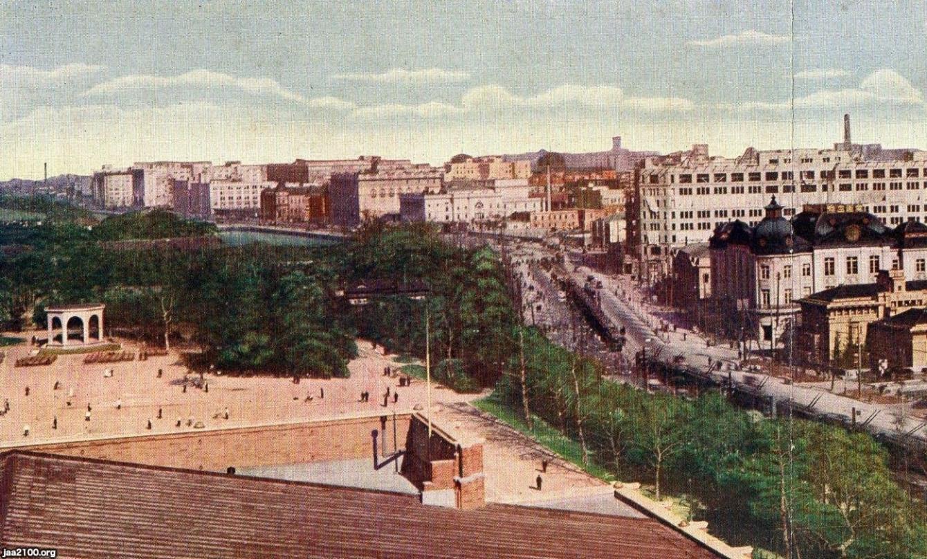 1930年 日比谷公園(昭和5年)▷日比谷公園→日比谷交差点・丸の内方面を見る
