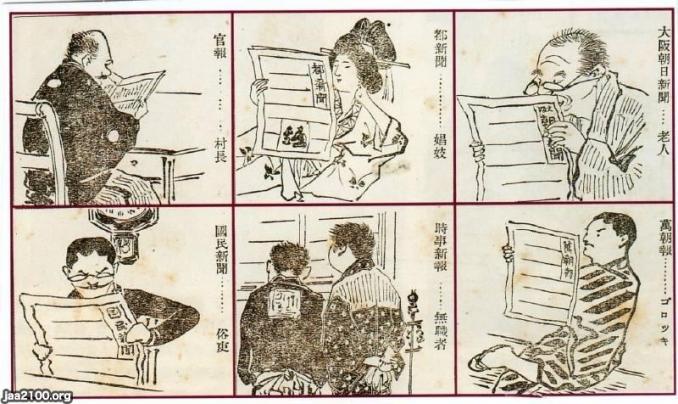 1907年 新聞社(明治40年)▷有力新聞の読者層の風刺漫画