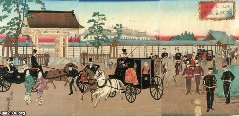 明治天皇(明治18年)▷赤坂仮皇居に太政官ら参内