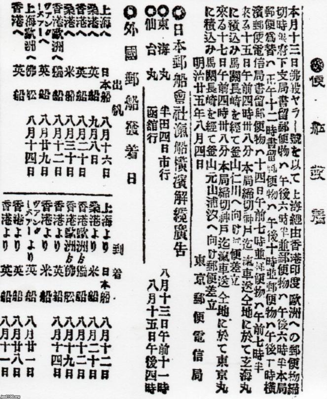 1892年 アメリカ・カナダ(明治25年)▷サンフランシスコ航路・ヴァンクーバー航路(日本郵船)