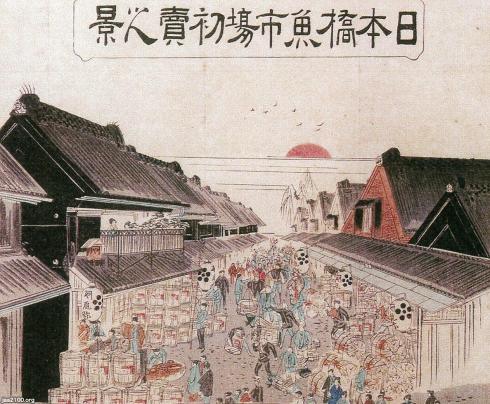 1899年 東京・日本橋(明治32年)▷<日本橋魚市場初売之景>