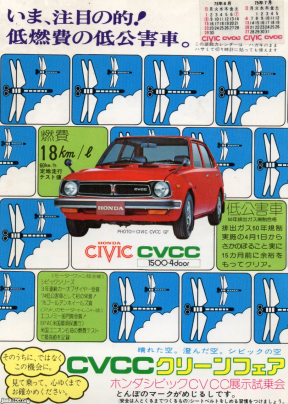 1975年 石油エネルギー(昭和50年)▷低燃費の小型車が注目(シビックCVCC、ホンダ)