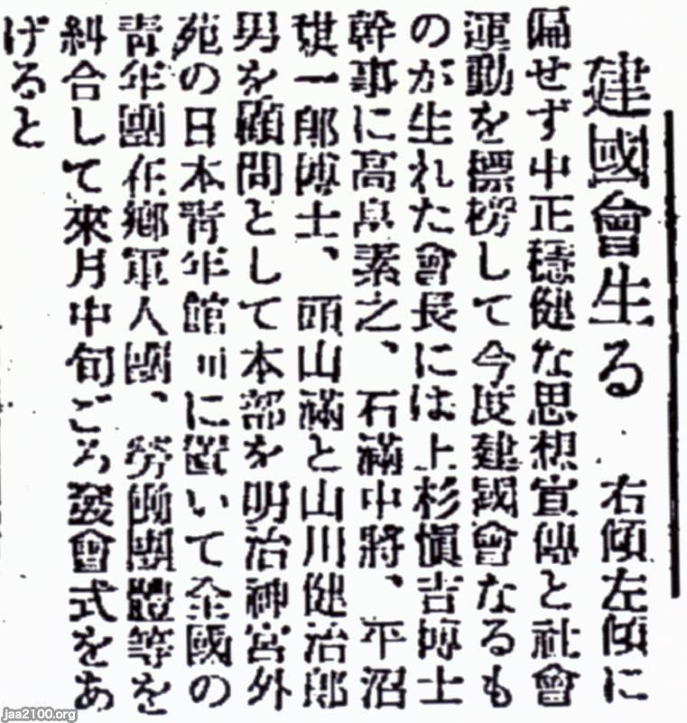 1926年 潮流(大正15年)▷愛国団体「建国会」の誕生