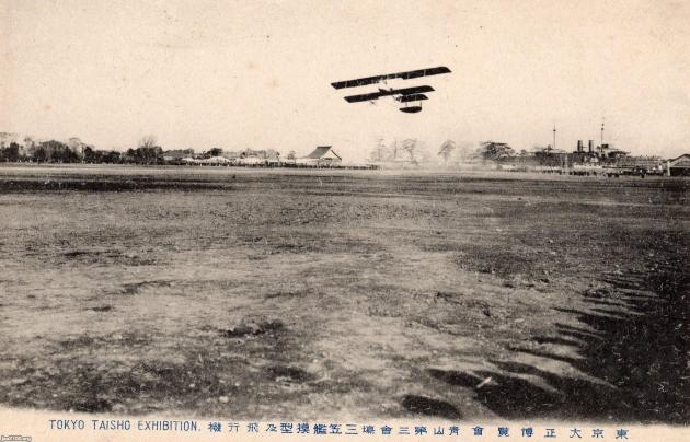 練兵場(今の神宮外苑にあった)における航空ショーで、本会場の上野会場まで飛行した