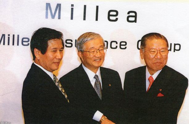 2001年1月に東京海上火災保険と日動火災海上保険と朝日生命保険が持株会社方式で経営統合に合意し「ミレア保険グループ」を結成の第一弾 http://www.tokiomarinehd.com/company/